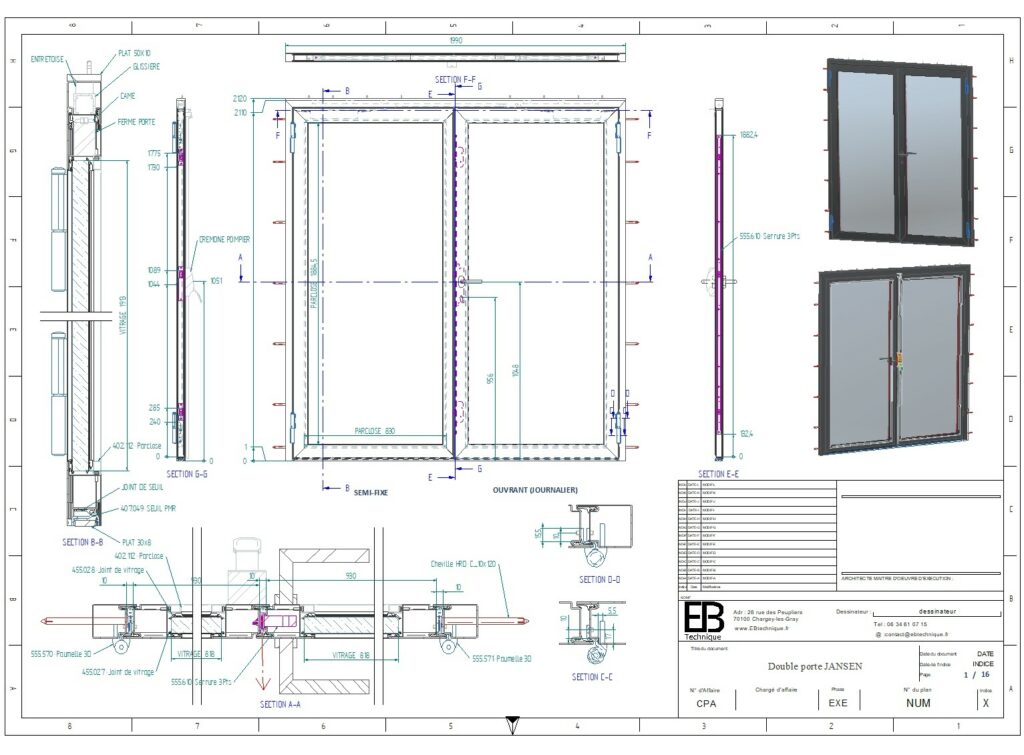 Etude et réalisation de plans de principe, de prototypage et d’exécution, suivant les informations fournies, cahier des charges, note de calcul, avis techniques, PV…, que ce soit pour du particulier, de l’industriel, ou de l’ERP.