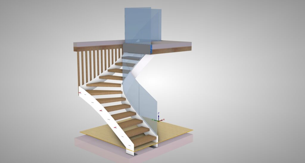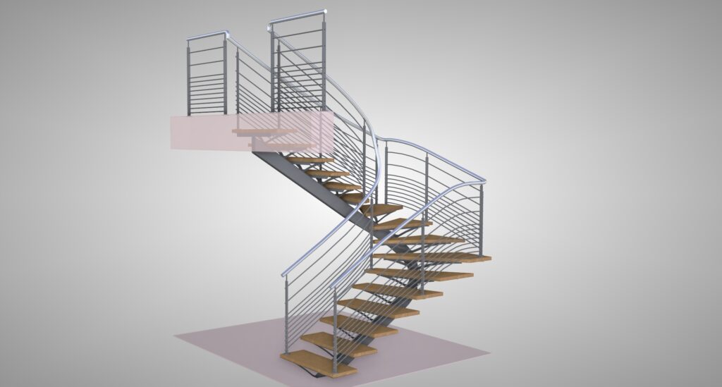 Escalier, garde-corps, verrière, mur-rideau, mobilier..